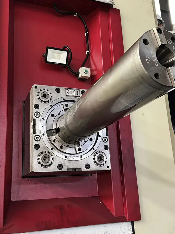 المغزل يتكون من عمود تجويف وعمود تفريز، ويستخدم محامل مغزل مستوردة عالية الجودة. كما يعتمد نظام الدفع الرئيسي على محرك سيرفو بتيار متردد (AC) مع ناقل حركة ميكانيكي من مرحلتين لتحقيق تنظيم سرعة مستمر بدون خطوات. مادة المغزل هي 38CrMoAlA، مع معالجة سطحية بالتنشئة النيتروجينية، تليها عملية طحن وتلميع نهائية تصل إلى صلابة تزيد عن HV900